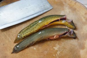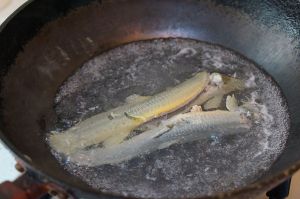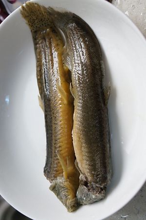 锅内加水烧开,将泥鳅放入沸水中烫煮1分钟,表面的粘膜可以轻松去除。