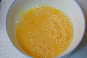 鸡蛋磕入碗中,撒入少许盐后打散。