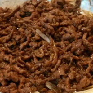 再放油,炒糖,糖化后放甜面酱炒匀,加肉丝,一起炒匀,时间把握好,不要把肉炒硬,放盐,盛出。