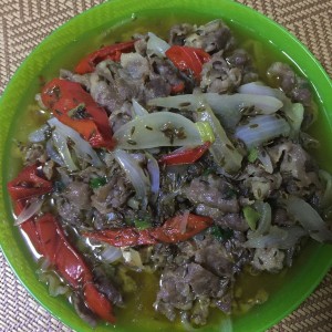 锅烧开放少许油、姜炒出香味、加入羊肉、然后马上加入洋葱、红辣椒、一起翻炒、 食物变色之后加入蚝油、盐、鸡精、一起翻炒、炒熟出锅即可