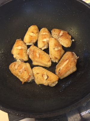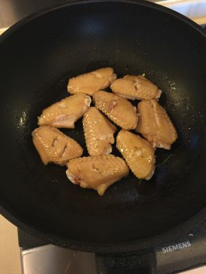 锅油热下入鸡翅小火煎