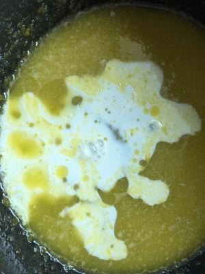等牛奶凉后倒入蛋黄液中,边倒边搅拌