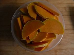 南瓜刨皮切片。