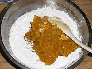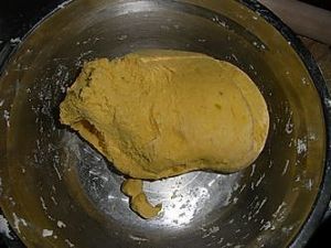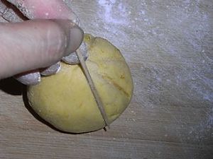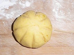 .南瓜和糯米粉揉成团。