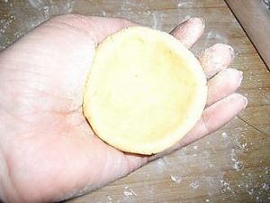 搓成团,捏成空心加豆沙。(呵呵,少拍一张放豆沙照)