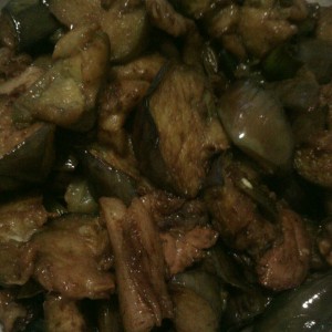 肉和茄子通通倒锅里,翻炒加盐,一会会儿就可以出锅咯