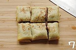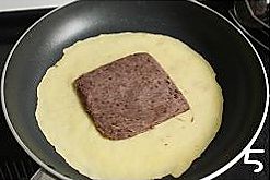 将饼皮的四边往内折,形成正方形,两面煎至金黄。