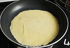 加热油锅,将面糊倒入形成圆形,用小火慢煎,两面煎熟。