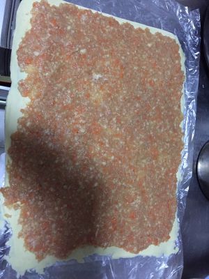 准备豆皮,洗净将肉泥平铺上去。切记要均匀