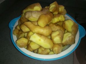 生姜用刷子狠狠的洗去泥土,削去老皮,腐烂部分,沥干!