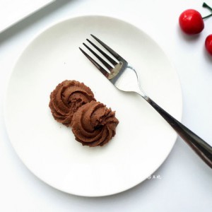 此时将烤箱上下火180度进行预热。把曲奇挤在不沾金盘里,每个曲奇之间要留一点缝隙,不要挤得太密。