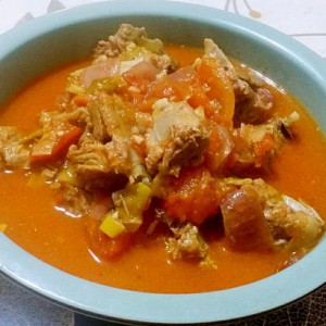 准备好食材,洋葱,大葱切丁,番茄切两部分,一部分切丁,一部分大块,排骨过水,姜蒜切沫。