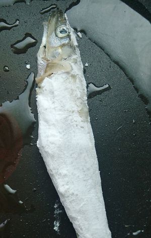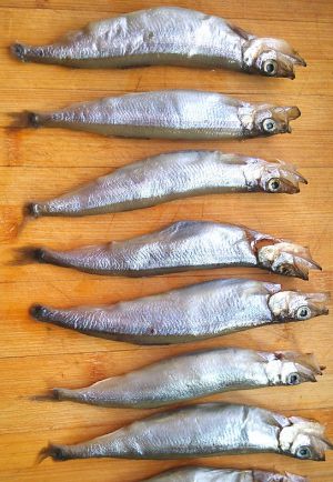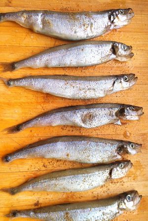 多春鱼去鱼鳃时一起揪出内脏,洗净沥干水分