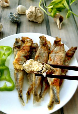 表面粘少许淀粉或面粉,入热锅热油,小火煎
