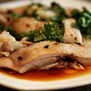 6,7分钟后,将鸡拎出凉水,沥干,切块, 摆盘, 待用。