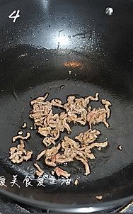 锅烧热放油,温油滑炒肉丝至表面变色,盛出