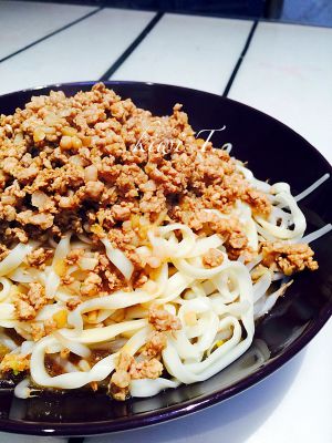 做好的肉末汁直接浇到面上撒上葱花就可以啦。