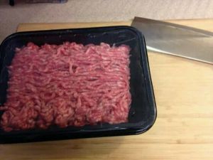 首先呢~在超市买上肉酱。猪肉,牛肉都可以。在这里用的是猪肉!