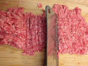 再把肉剁剁剁剁细腻点,我这一坨1.14磅,分成两小坨差不多250g左右一坨猪肉,每坨剁了5分钟