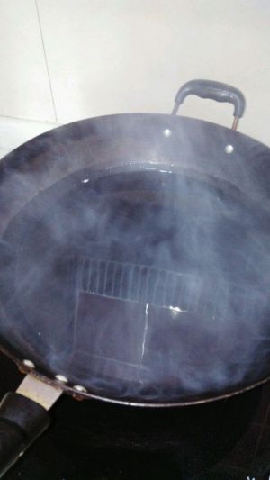 锅里倒油烧至冒白烟
