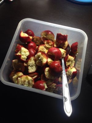 买了新鲜山楂,去头去尾,然后用手掰开去核