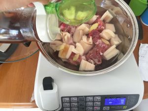 将扇骨、莲藕和姜片放入捷赛自动锅中