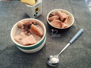 ps:使用砂锅的小伙伴们,先开大火将水烧开,撇去血沫后,转小火,加锅盖慢慢熬煮,直至熬煮到肉酥烂,莲藕绵软关火