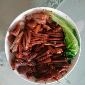 切成片片,再开水烫个生菜,美味港式蜜汁叉烧。