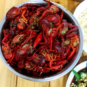 锅内到适量的油烧红,倒入准备好的龙虾爆炒,再加入龙虾料,葱、姜、蒜、辣椒干再炒一会,加入一点水!待汁收干后就可以起锅啦!