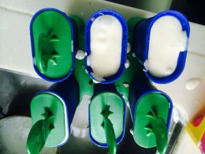 先在磨具里面撒一些巧克力碎,再把冰淇淋液灌入磨具中。冷冻5小时左右即可。