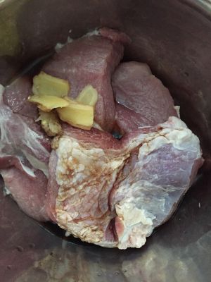 肉切薄片,一厘米左右,这样易熟。放入料酒,酱油,盐,姜码味