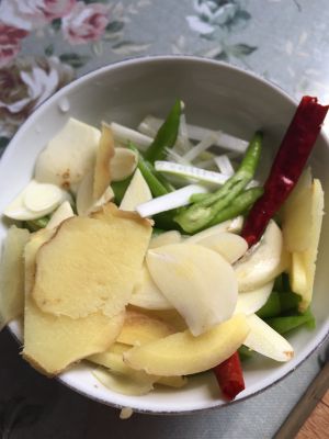 切好的葱姜蒜和线椒