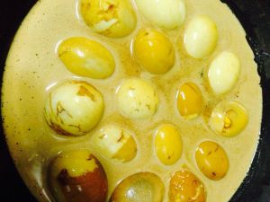煮好鸡蛋捞出放凉水里拔,这样容易剥离