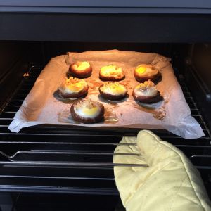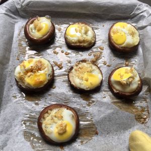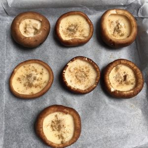 鹌鹑蛋磕进香菇窝里