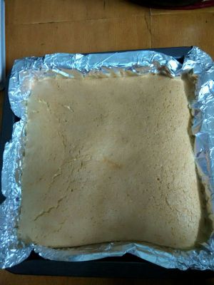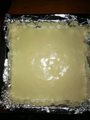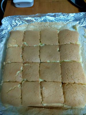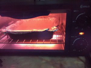 连同锡纸一起拿出来~在锡纸上用刀切块~