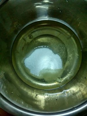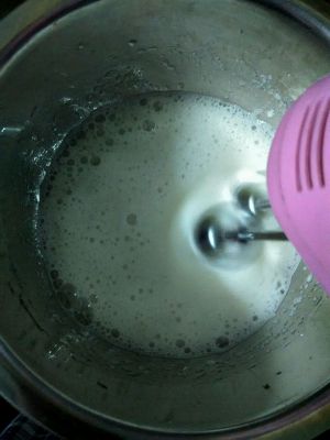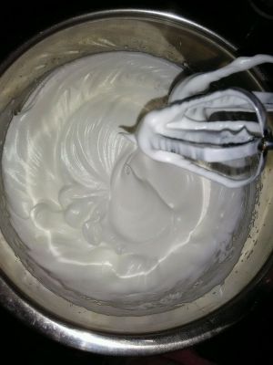 蛋白里一次性加入60克白糖~再倒几滴醋开始打发~