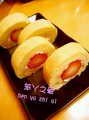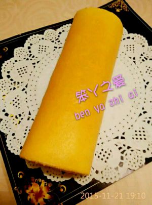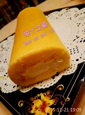 这是最早的四个蛋的,烤盘小,蛋糕卷厚,加上刚刚学着做,直接卷裂