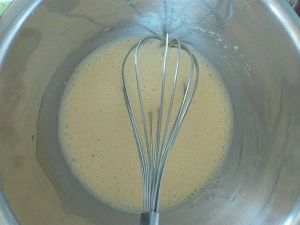 取三分之一的蛋白糊加入蛋黄糊里,切拌均匀