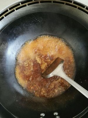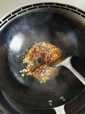 热锅倒油,放入三分之二的姜末和蒜末炒出香味后放入郫县豆瓣酱一起煸炒。