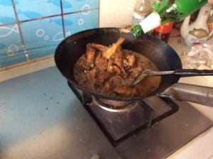 加桂皮大料,老抽,生抽,鸭子上色后加啤酒。