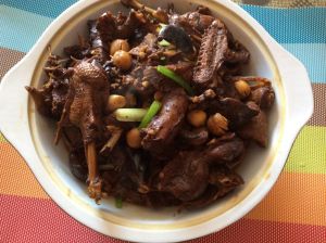 等鸭子烧熟,加盐,糖,鸡粉,芹菜,翻炒均匀即可装盘。