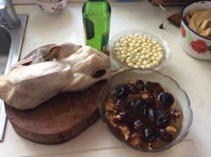 全部食材,香菇,莲子分别泡水,鸭子洗净切块备用。