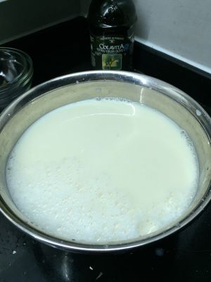 大火煮开,关火,再大火煮开,挑起豆皮,慢慢加米醋,一边加一边用勺子搅拌,起絮絮了就关火