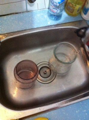 装柠檬糖的瓶子用开水烫一下,杀菌,另一个瓶子是做泡菜的