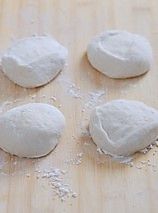 酵母溶于水与面粉和成稍软的面团,发酵至2倍大。排气,分成四等分,揉匀,饧20分钟。