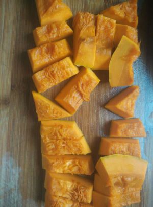 南瓜去皮切小块,上锅蒸熟