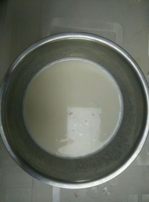 牛奶加热,同时加两勺糖,搅拌至融化,牛奶晾至温热,加酵母粉,搅拌溶解
