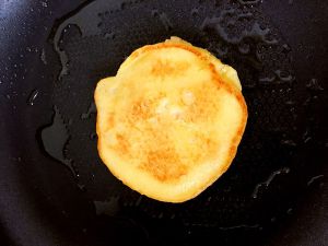 热锅放油小火,倒入少许,煎大概半分钟,翻面三到四次