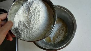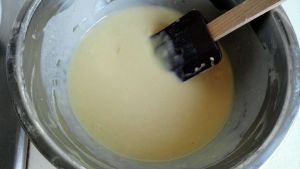 再加入牛奶,增加一些含水量。(没有牛奶,也可以用一小勺奶粉,泡开后替代。)