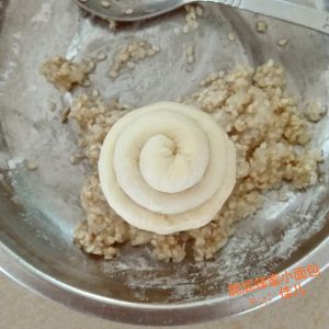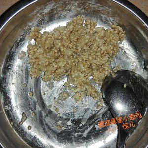 低粉10g,白糖8g,芝麻5g,玉米油适量混合拌匀备用。